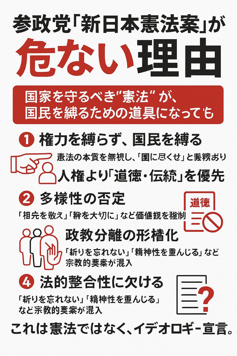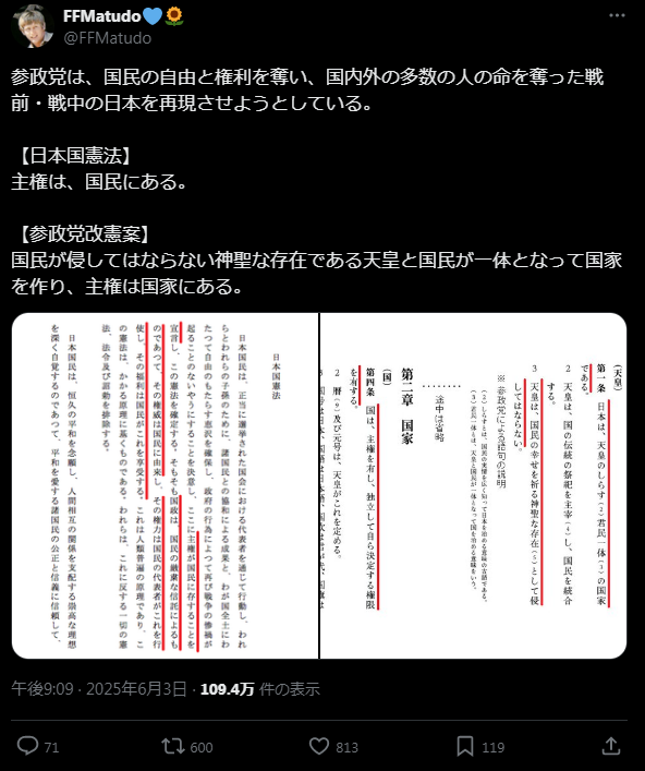 参政党の政策「国民主権をやめ天皇主権に」「憲法は国ではなく国民を縛るものにする」「農薬・化学肥料を禁止」「国民を全員農民に」etc