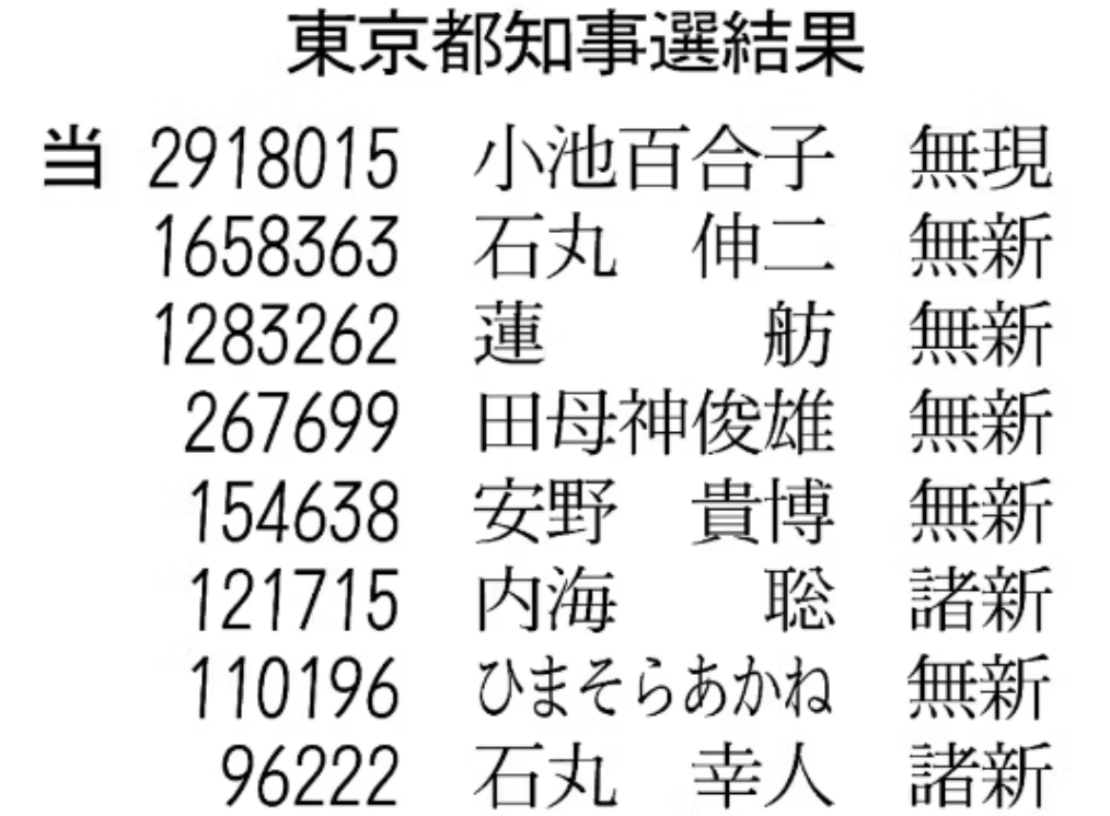 敵は小池ただ一人と的を絞った結果、よく分からん奴にまで負けるとかちょっとおもろかった