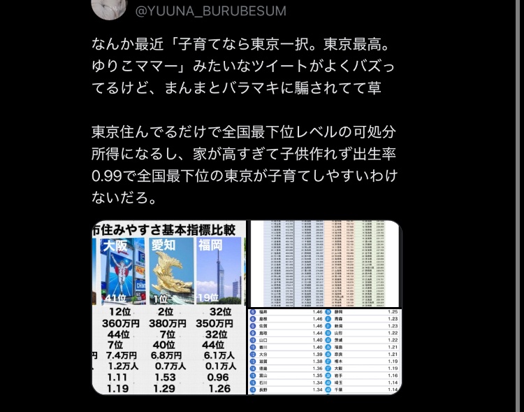 【画像】東京都民「東京の子育て支援最高!子育てなら東京一択!」→完全に論破されてしまう…