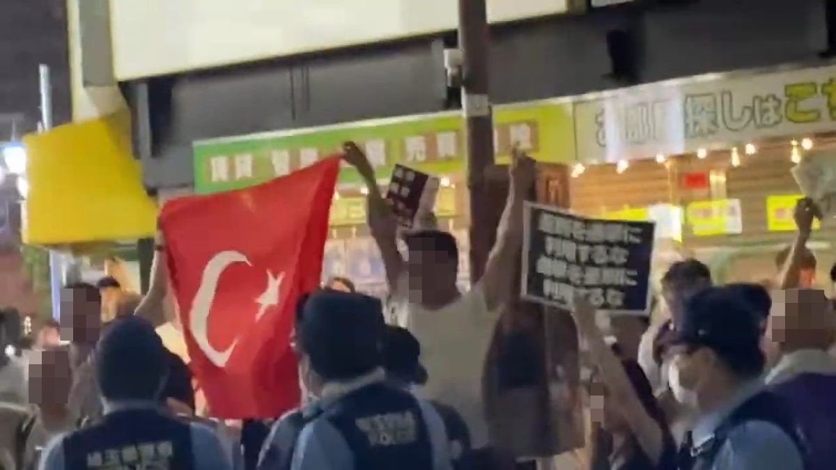 川口市西川口駅において、ジョーカー議員による参院選の応援演説中になぜかトルコ国旗が掲げられてしまう