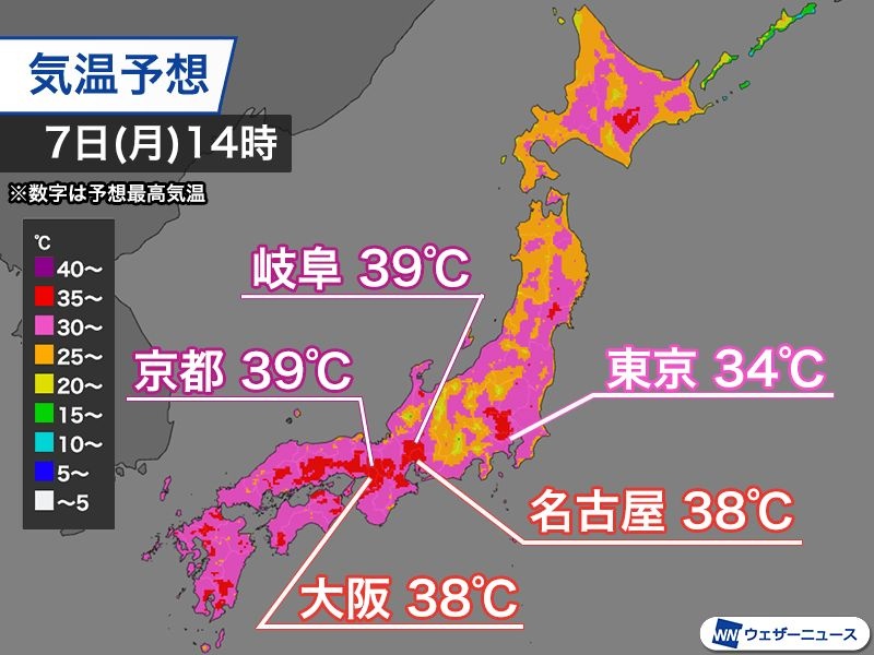 【動画解説】週明けにかけ危険な暑さ 東京も猛暑日予想 7日は40℃近い所も