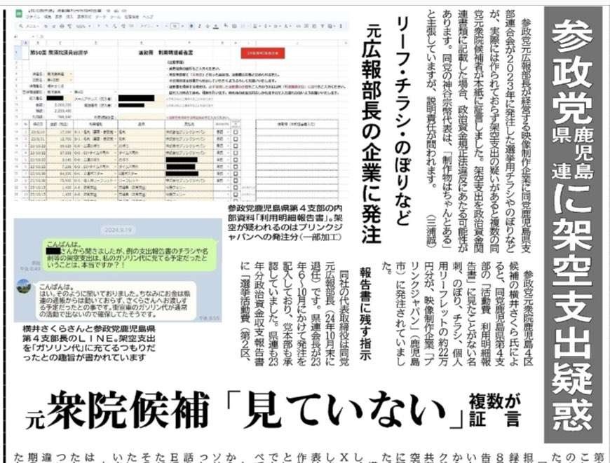参政党鹿児島県連に「架空支出」の疑惑があると、複数の同党元衆院候補が「しんぶん赤旗」に証言しました。