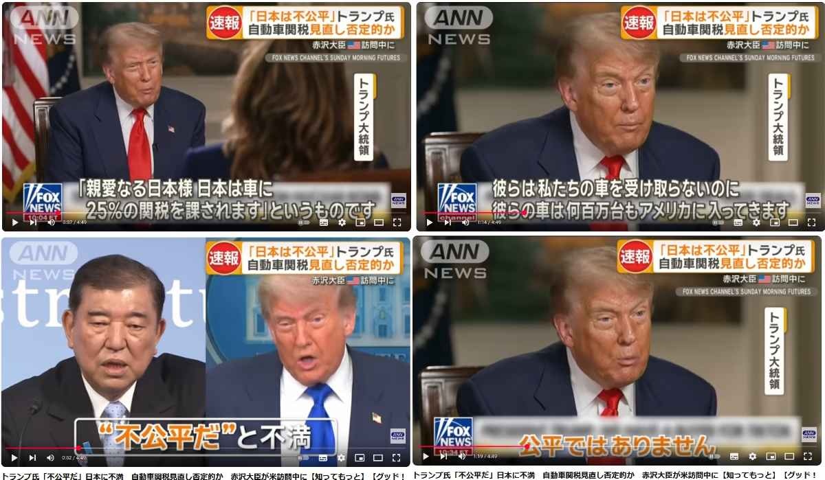 トランプ氏「不公平だ」日本に不満 自動車関税見直し否定的か 赤沢大臣が米訪問中に