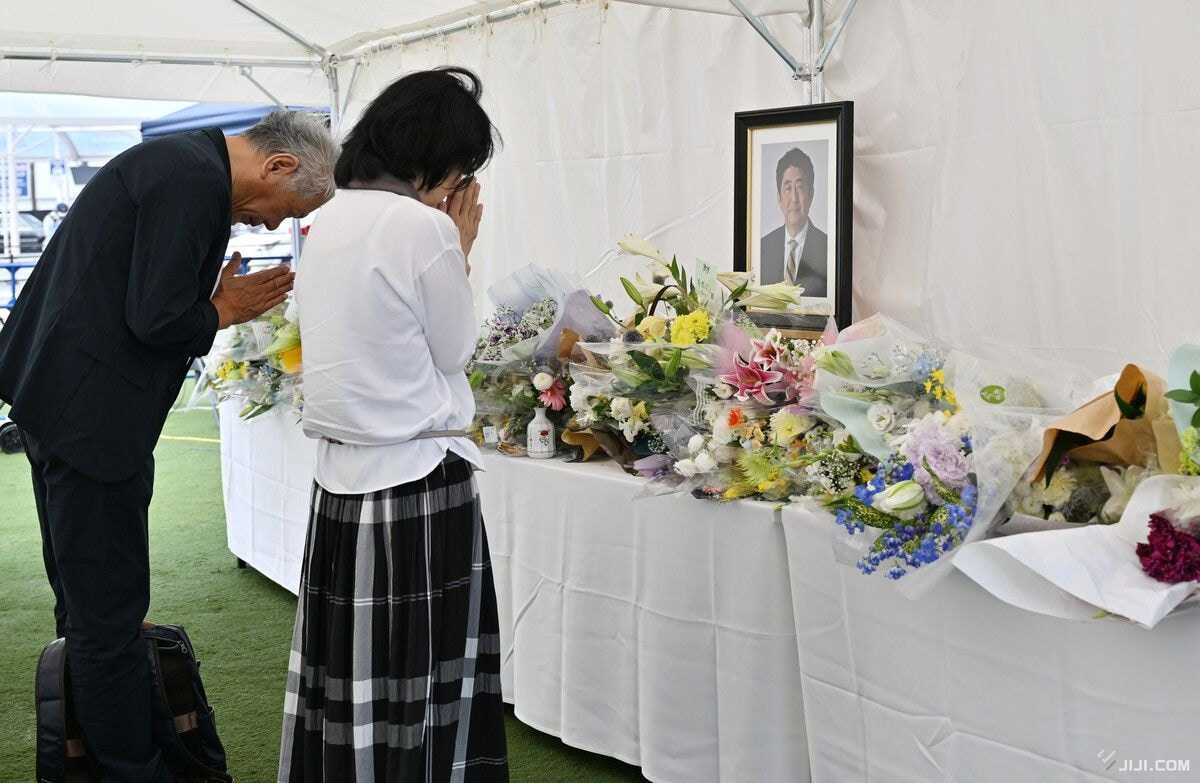 「あっという間」「悔しい」 現場献花台に多くの人―安倍元首相銃撃3年・奈良:時事ドットコム