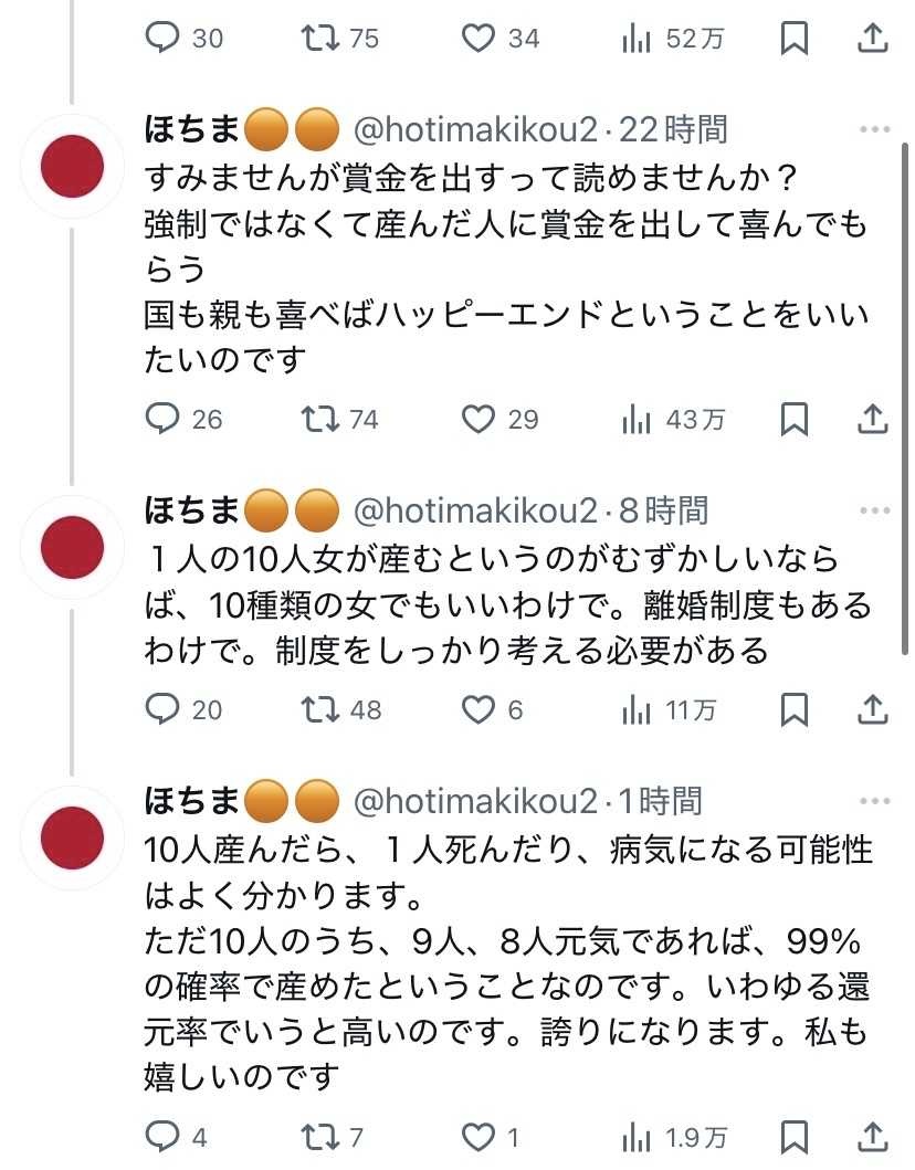 1人5人産んで1億貰えるなら少しは産むやつはいるだろ