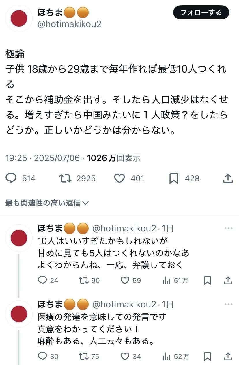 いまのわーくにの人口減少止めるなら何かしら劇薬は必要だよな