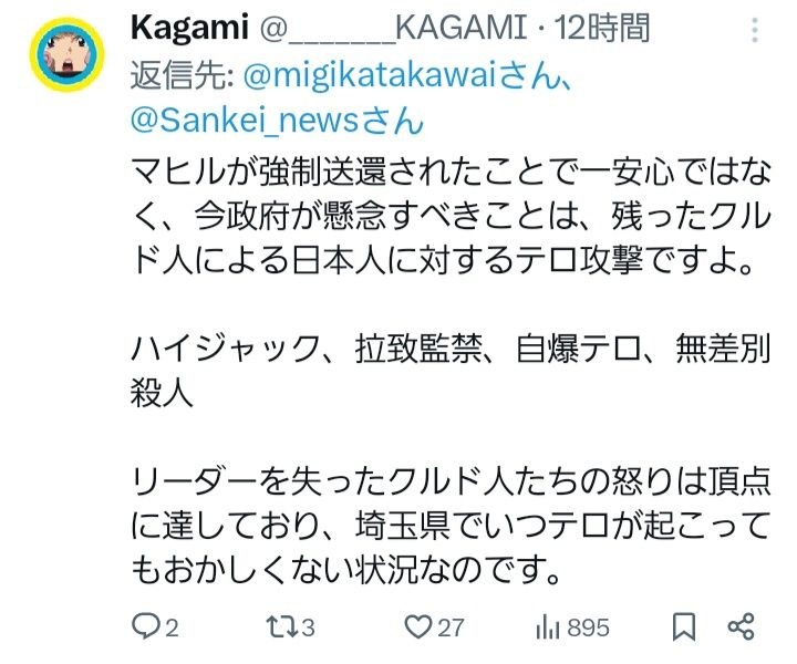 いっそのことテロ起きれば完全にクルド排斥の流れにできるのにな