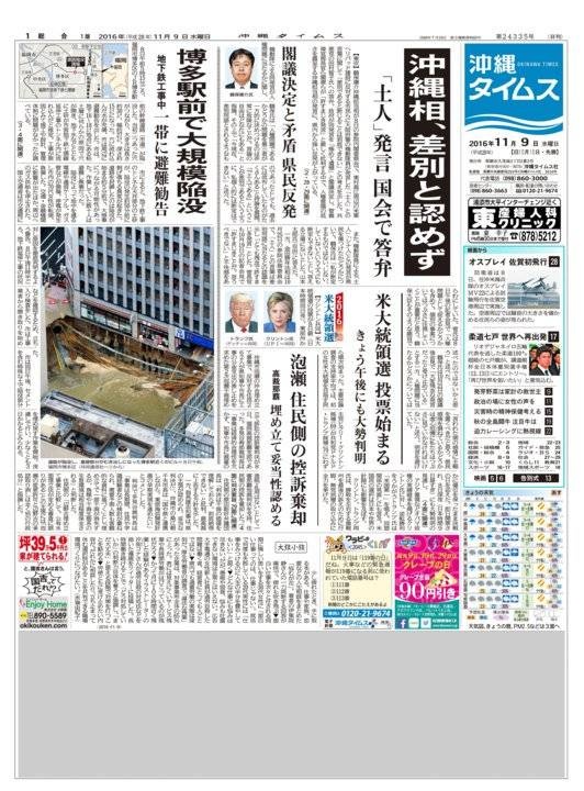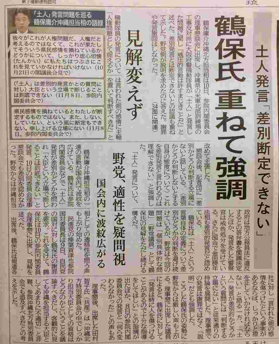 コイツがよりにもよって「沖縄担当大臣」として土人発言をかばった際には2つある県紙両方が大バッシングしたけど