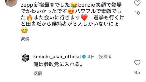 ベンジーこと浅井健一さん「俺は参政党に入れる」