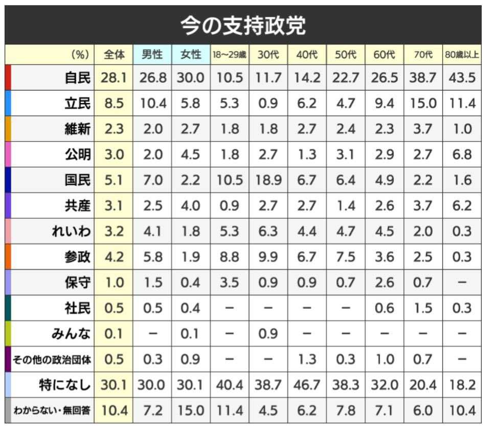 むしろ適齢期である10-20代女は、フェミLGBTの共産社民より余裕で参政党を支持してることが数字から分かるのでは