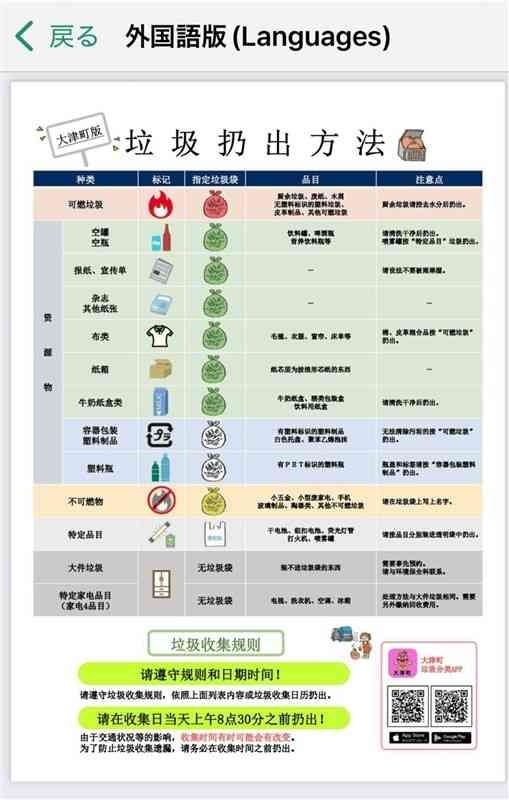 うちの所の自治体はゴミ出し例を詳しく書いた案内書を役所で配ってるけどね もちろん英語版もある 中国語版は分からんけど