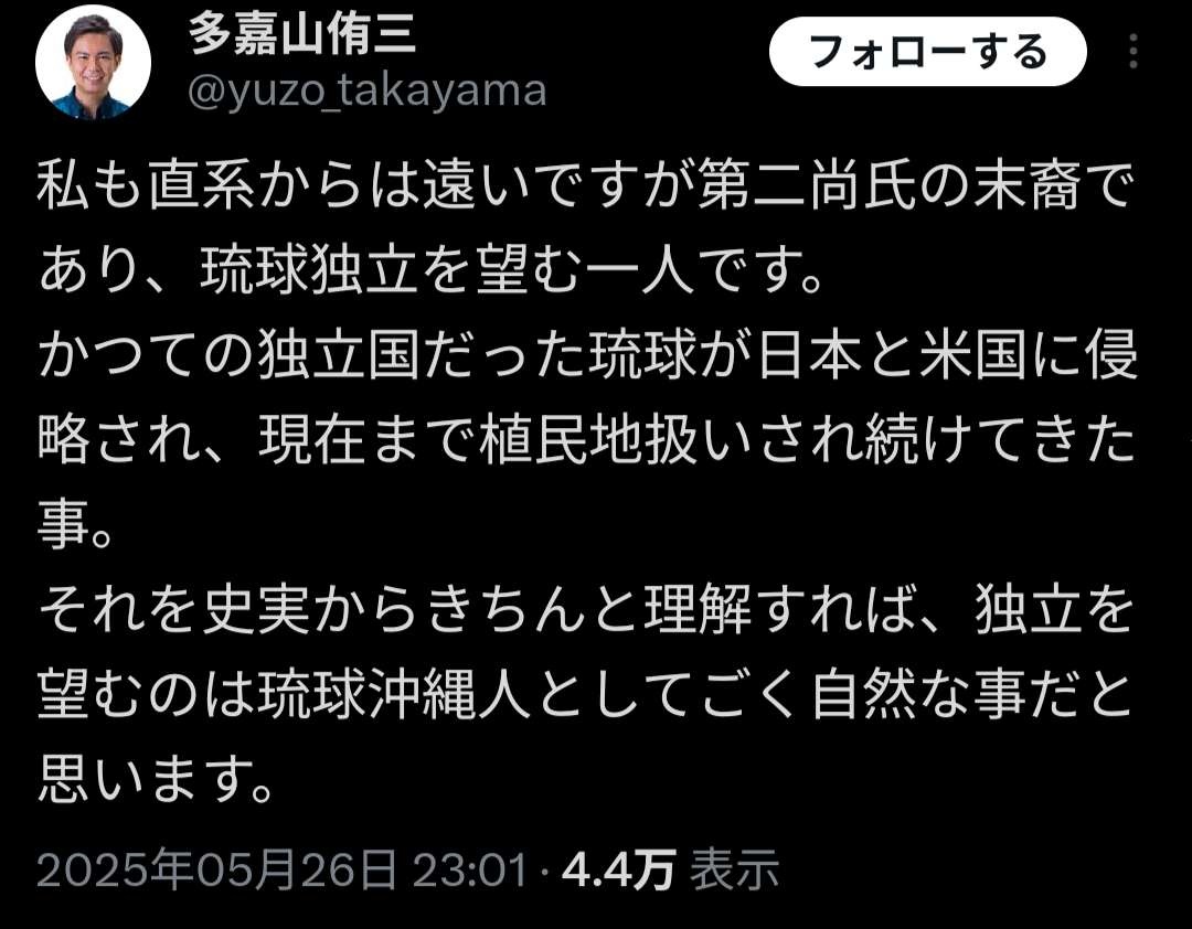 リベラル嫌儲的には沖縄はジャップが無理やり併合したという統一された見解があるからな