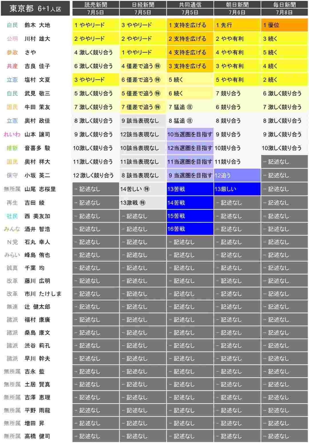 都議選の総票数からすると比例代表ぐらいはいけそうな気がしたけどそれも厳しいの?
