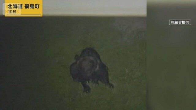 今月10日に撮影された映像。光を当てられても逃げる様子はありません。同じ日、住宅近くの草むらではクマが駆け抜ける姿も捉えられていました。さらに、別の住宅の裏に設置したカメラにはクマの姿がはっきりと。撮影時刻は10日午後9時。撮影者によりますと、クマは体長1.5メートルほどだったといいます。