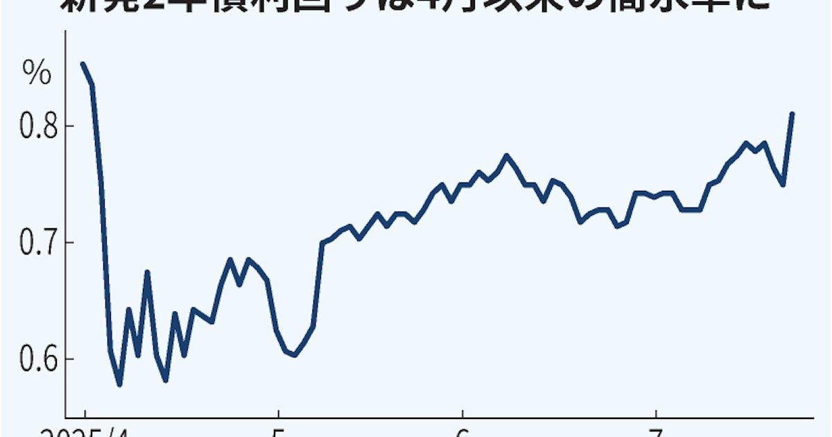 投資家のリスク回避姿勢が和らぎ、相対的に安全とされる債券には売りが加速した。新発2年債利回りも約3カ月半ぶりの高い水準となった。