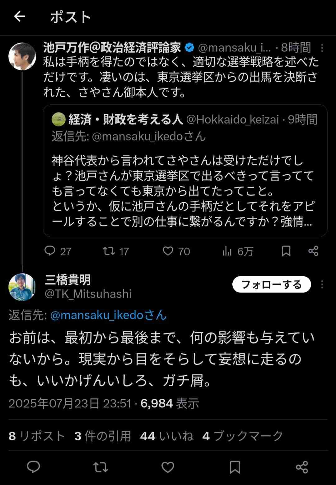 三橋って知識人ぶるけどこの煽りレベルはねらーのそれだよな