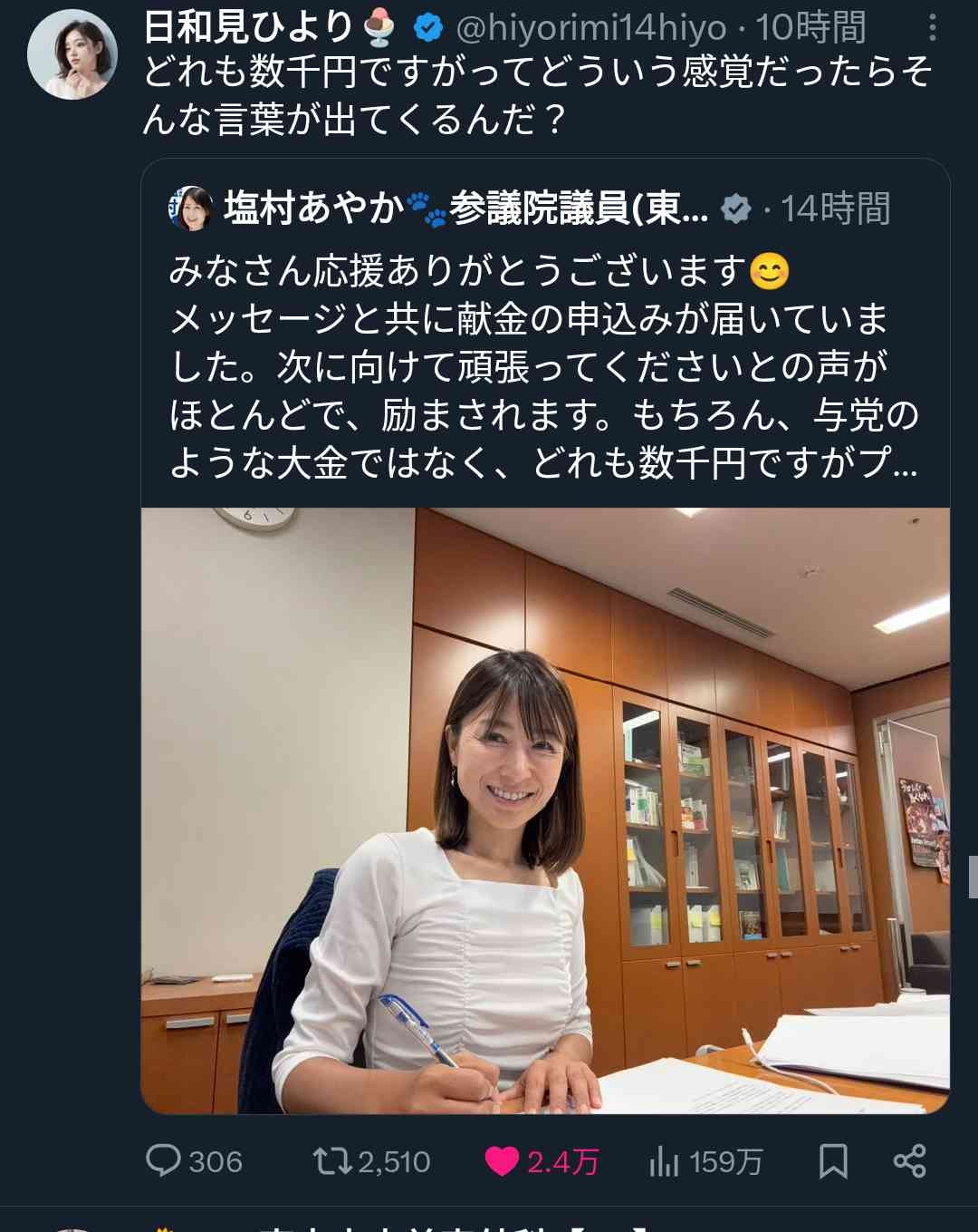 草の根活動的な微笑ましい献金ですわオホホホって感じだろ