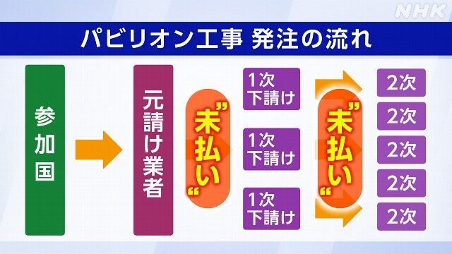 158の国と地域が参加する大阪・関西万博をめぐっては、海外パビリオンの建設工事に参加した下請け業者から「発注元から期限までに代金が支払われていない」という訴えが相次いでいます。