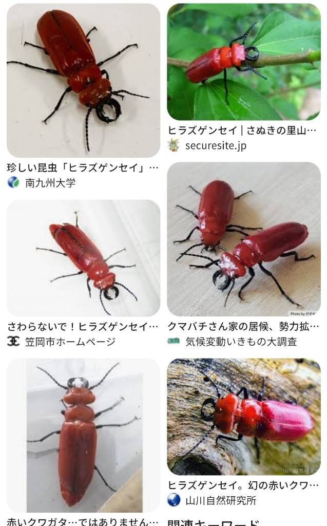 福井県小浜市内の男性が、見た目は赤いクワガタのような昆虫「ヒラズゲンセイ」を市内の山林で発見、撮影した。毒があり、もともと四国地方など日本の南方に生息していたが近年は県内でも確認されている。専門家は「珍しいと思っても触らないで」と注意を呼びかけている。