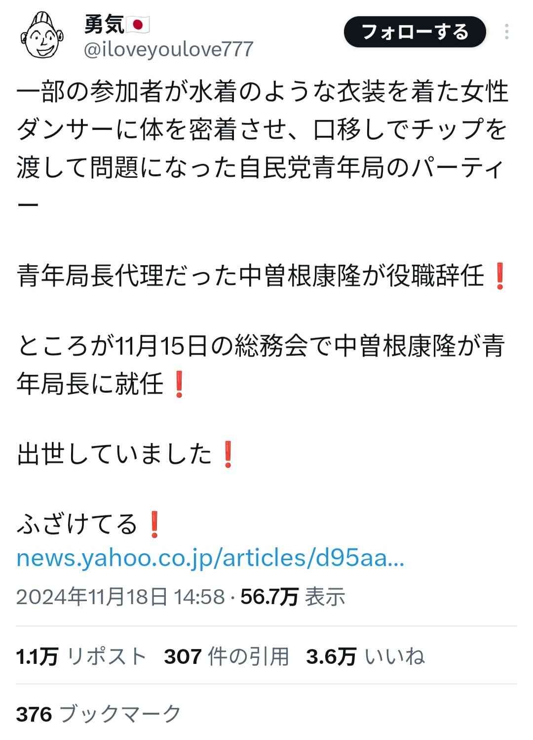中曽根の選挙区の前橋は今回参政党に負けたから必死なんだよ