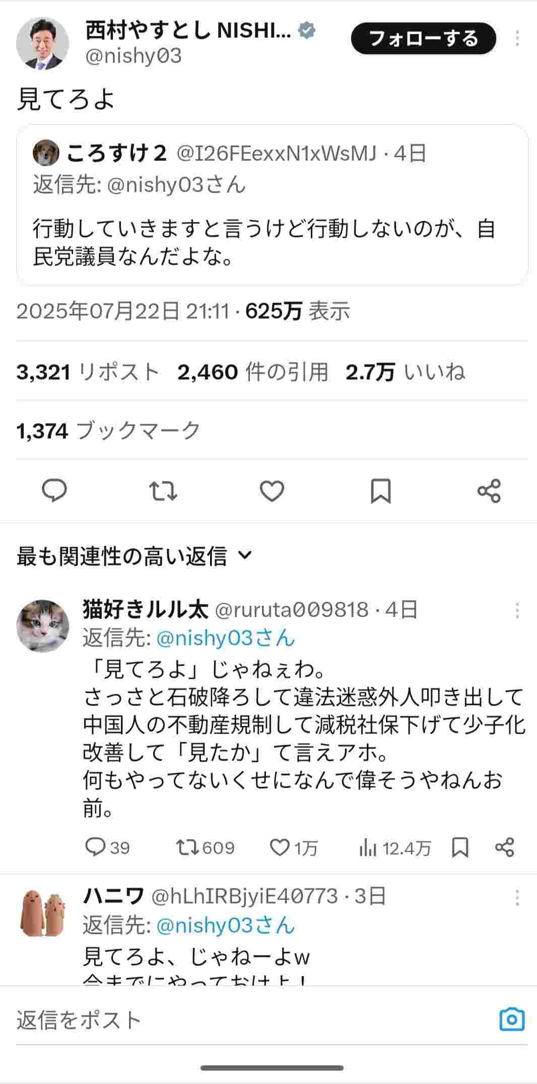 西村より参政党支持してそうんな猫アイコンがすげーイキってるのがムカつくんだけど