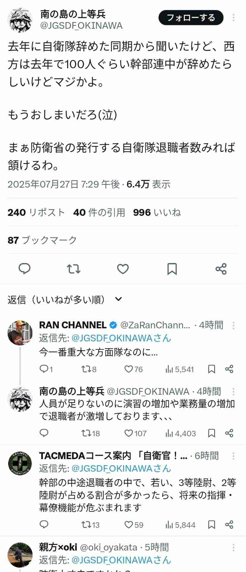 今の自衛隊はマジキチネトウヨ参政党支持者が大半を占めてる状態だと思ったほうが良い