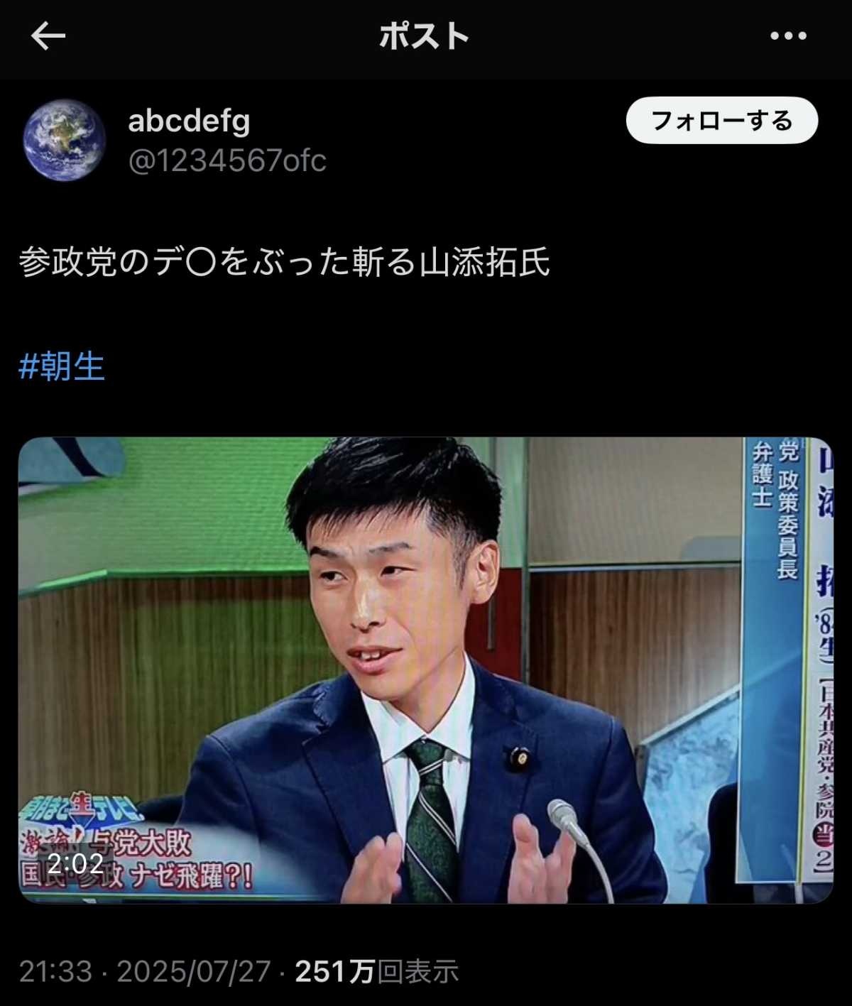 山添拓「外国人はしっかり税金納めて社会保険料も払ってる。こういう事実から目を背けて排外を煽るな」