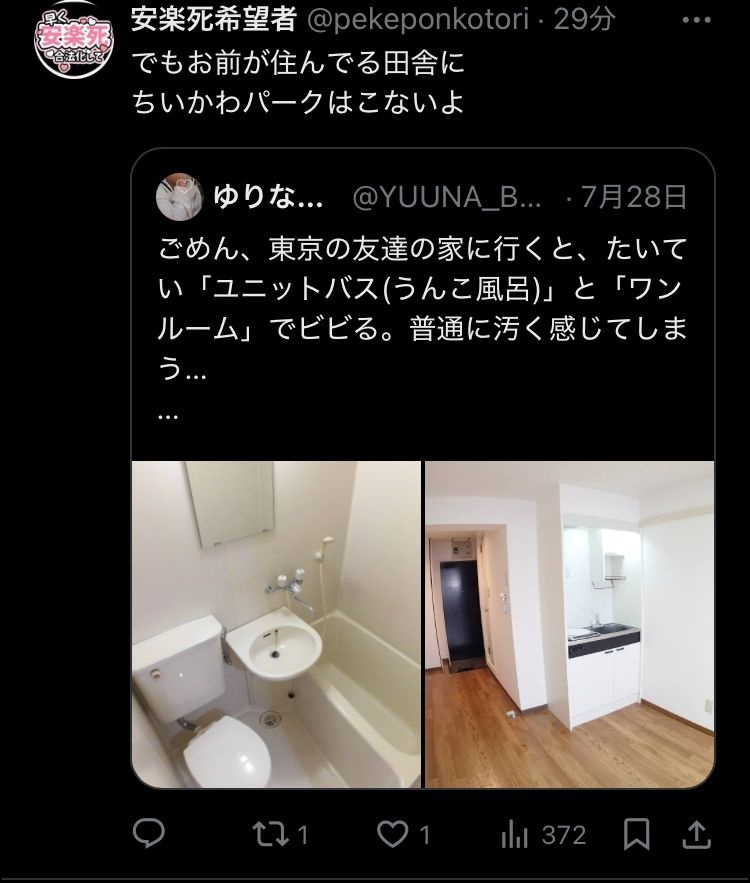 田舎に住んでるけどお風呂とトイレが一緒とか考えられないわ