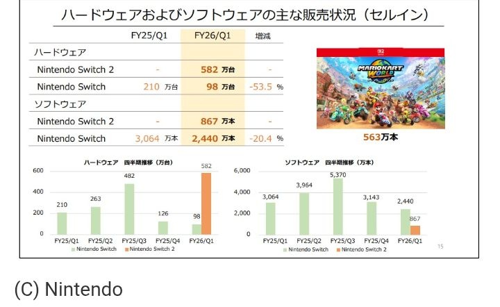Switch2用の専用ソフト「マリオカート ワールド」の販売本数は563万本を記録している。