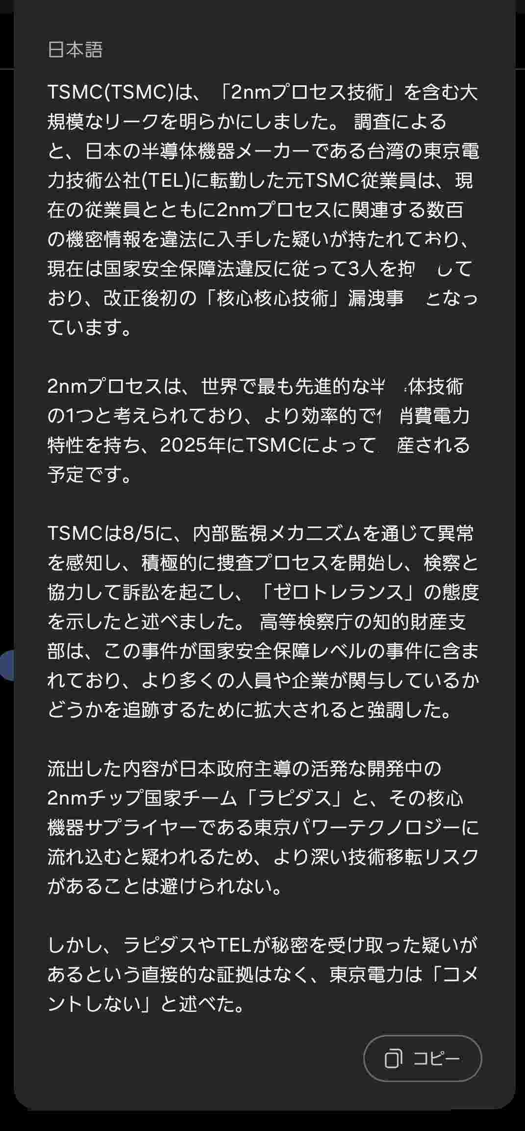 TSMCは単葉は扱ってないし盗みようがない