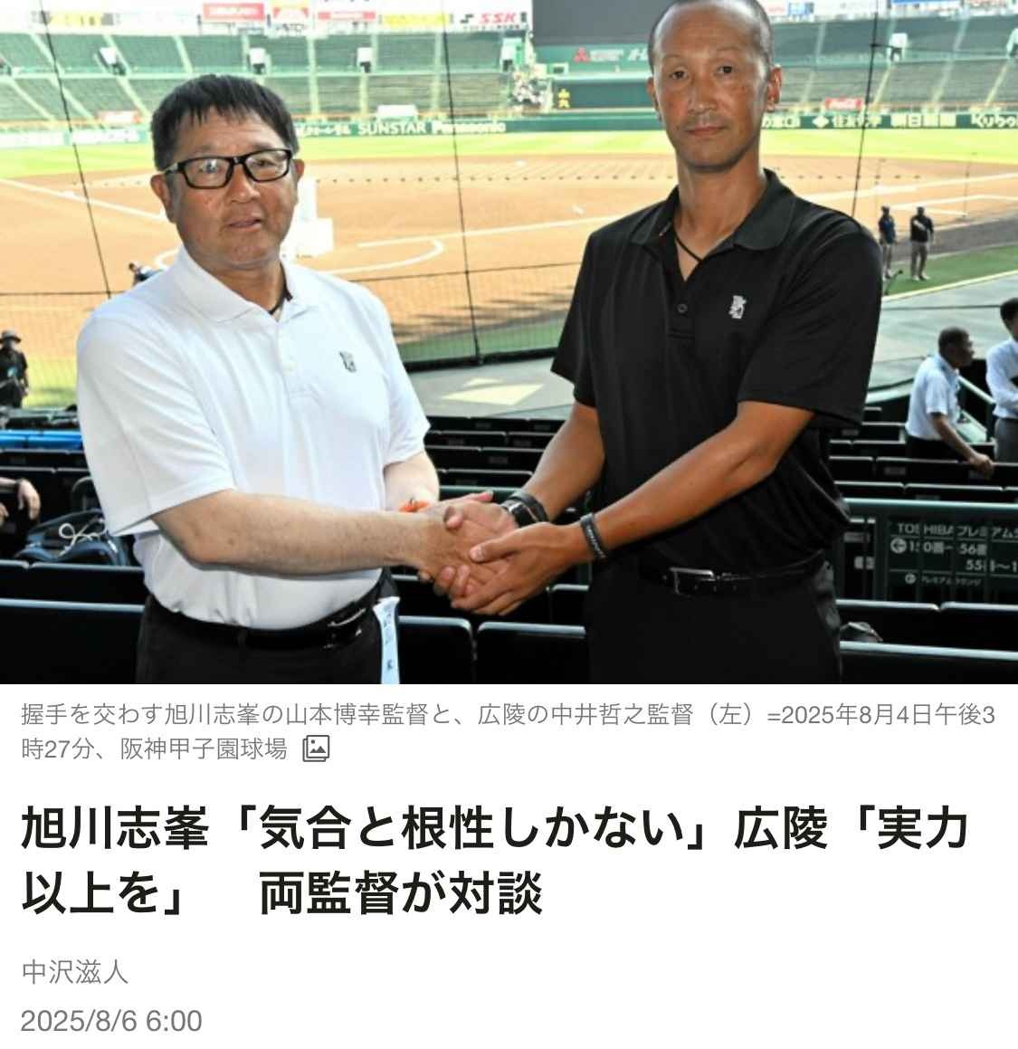 第107回全国高校野球選手権大会(朝日新聞社、日本高校野球連盟主催)第3日の7日、第4試合で対戦する旭川志峯(北北海道)の山本博幸監督(45)と、広陵(広島)の中井哲之監督(63)に、意気込みを聞いた。
