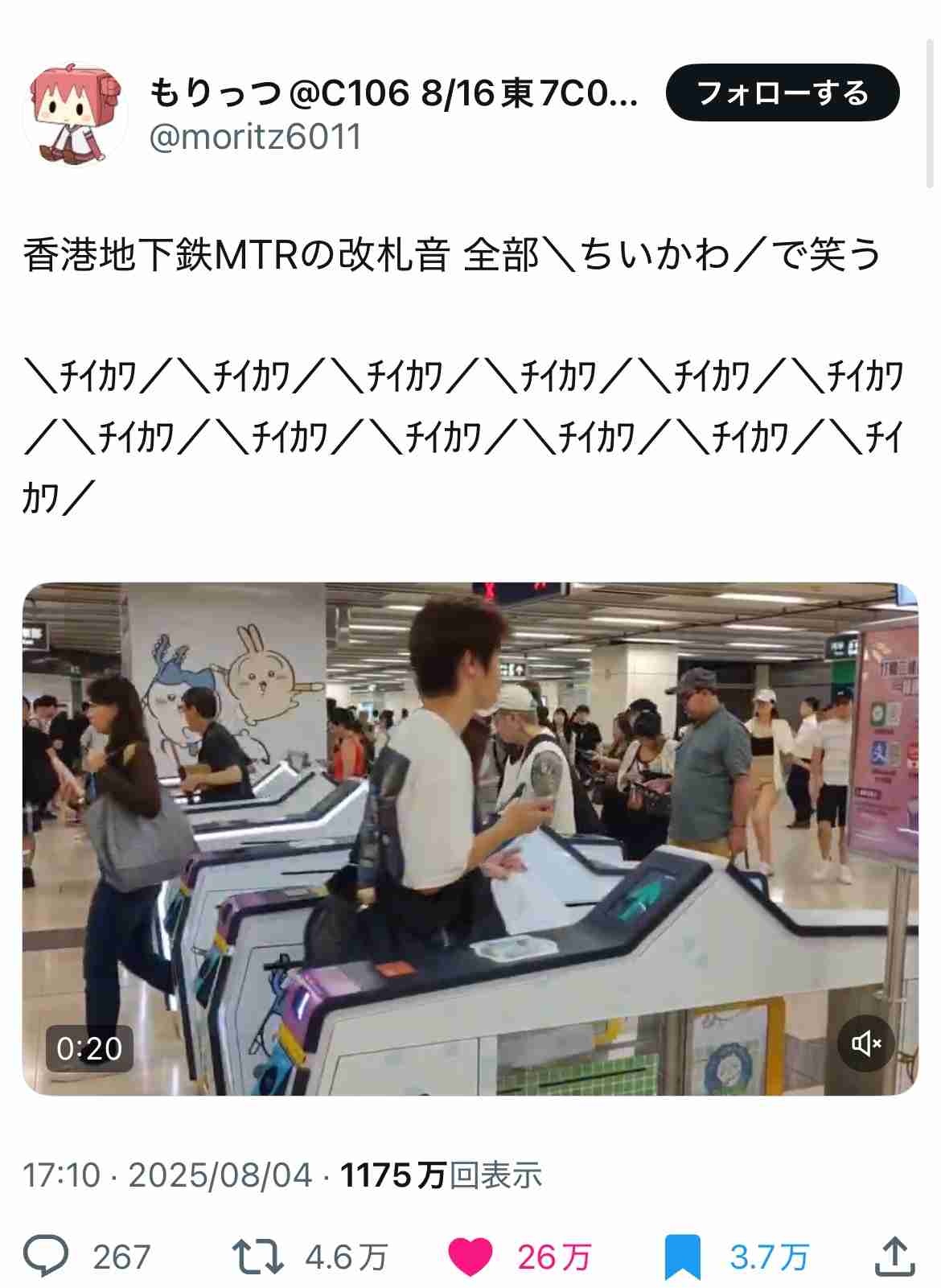香港ちいかわ人気ヤバいからなあ