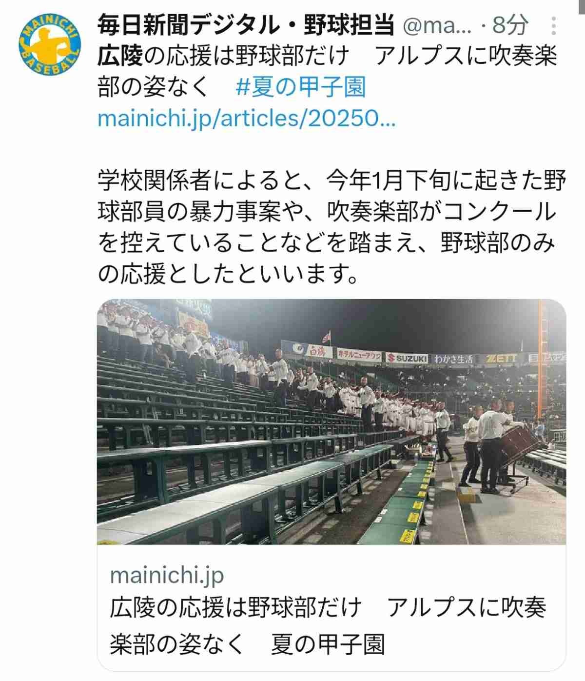 つまり今後広陵の吹奏楽部は野球部が甲子園出ても応援はできないんやな