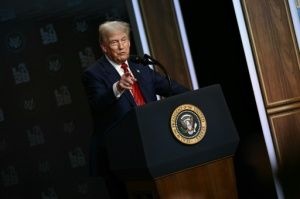 【ワシントンAFP=時事】ドナルド・トランプ米大統領の言葉を信じるなら、何百万人もの米国民がトランプ氏の広範な関税政策によって生み出された富の一部を受け取ることになるかもしれない。(写真はドナルド・トランプ米大統領)