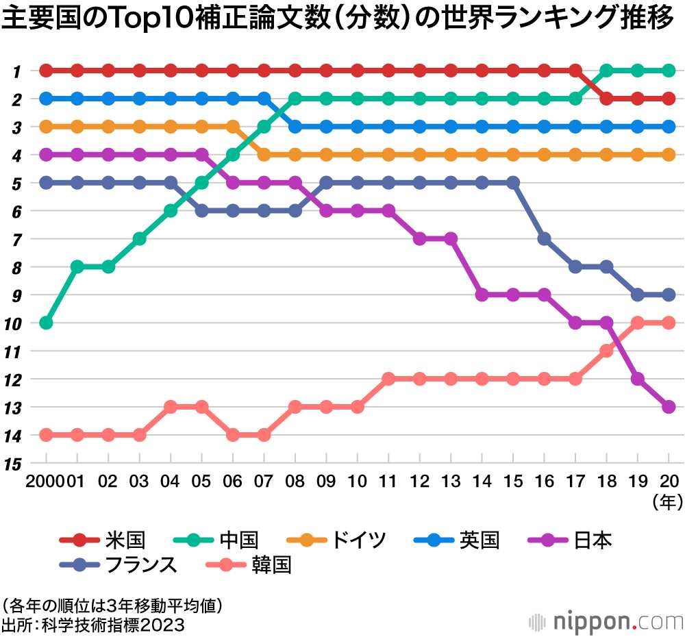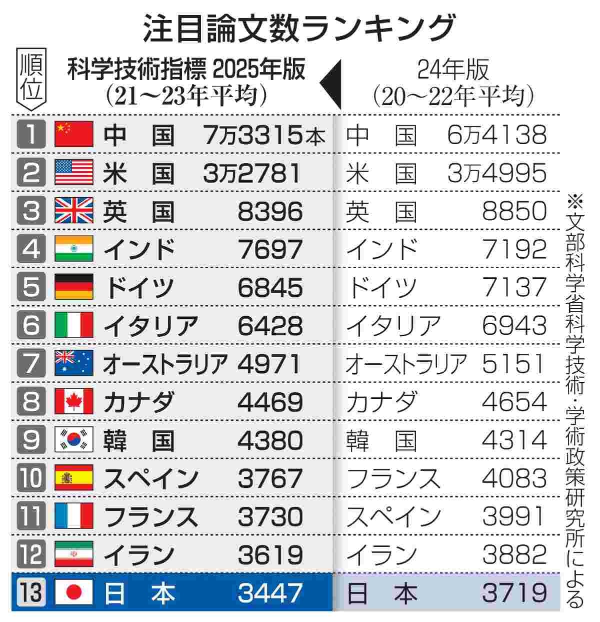 注目論文数、日本は今回も13位 中国1位、科学技術指標2025