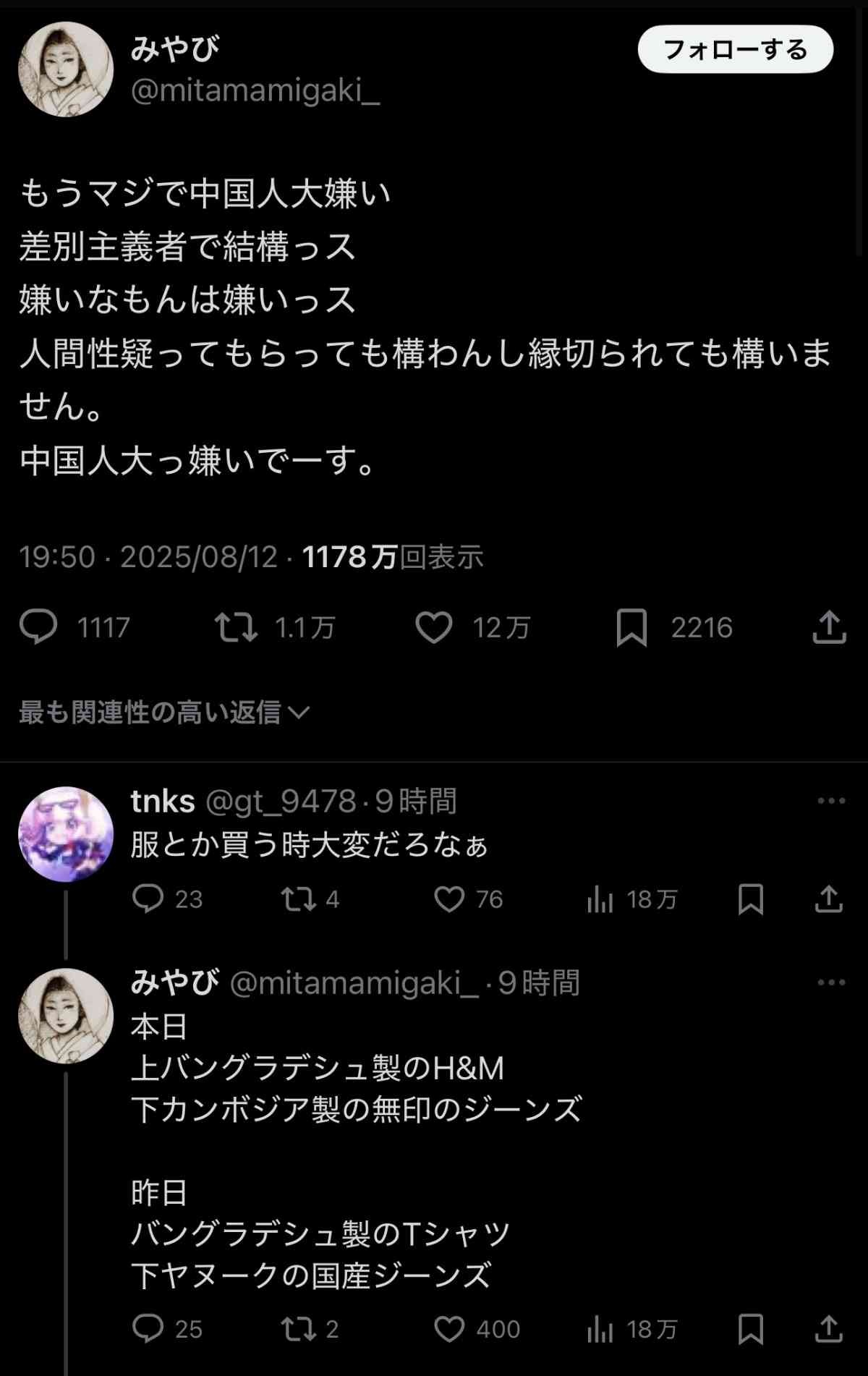 クソな奴は中国人でも日本人でも嫌いなだけで国籍で判断はしないわ