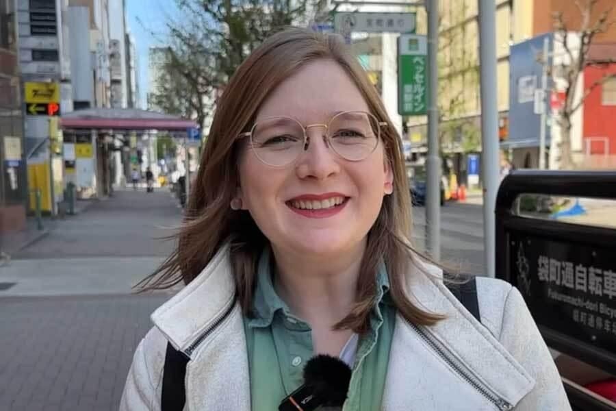 箸の使い方に苦戦しながらも、ミカエラさんはなんとか口に運びます。レナさんが「きしめんは箸で食べるのが難しいんだよ」というと、うなずきながら苦笑いを浮かべました。