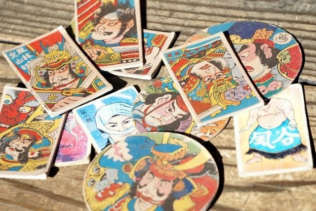 紙や牛乳瓶の蓋などを使い、地面に置いた相手のメンコをひっくり返すシンプルなルールながら、力加減や技術が問われる奥深さも魅力です。友達同士で勝負し合い、お気に入りの絵柄を集めたり交換したりと、楽しみ方もさまざまでした。