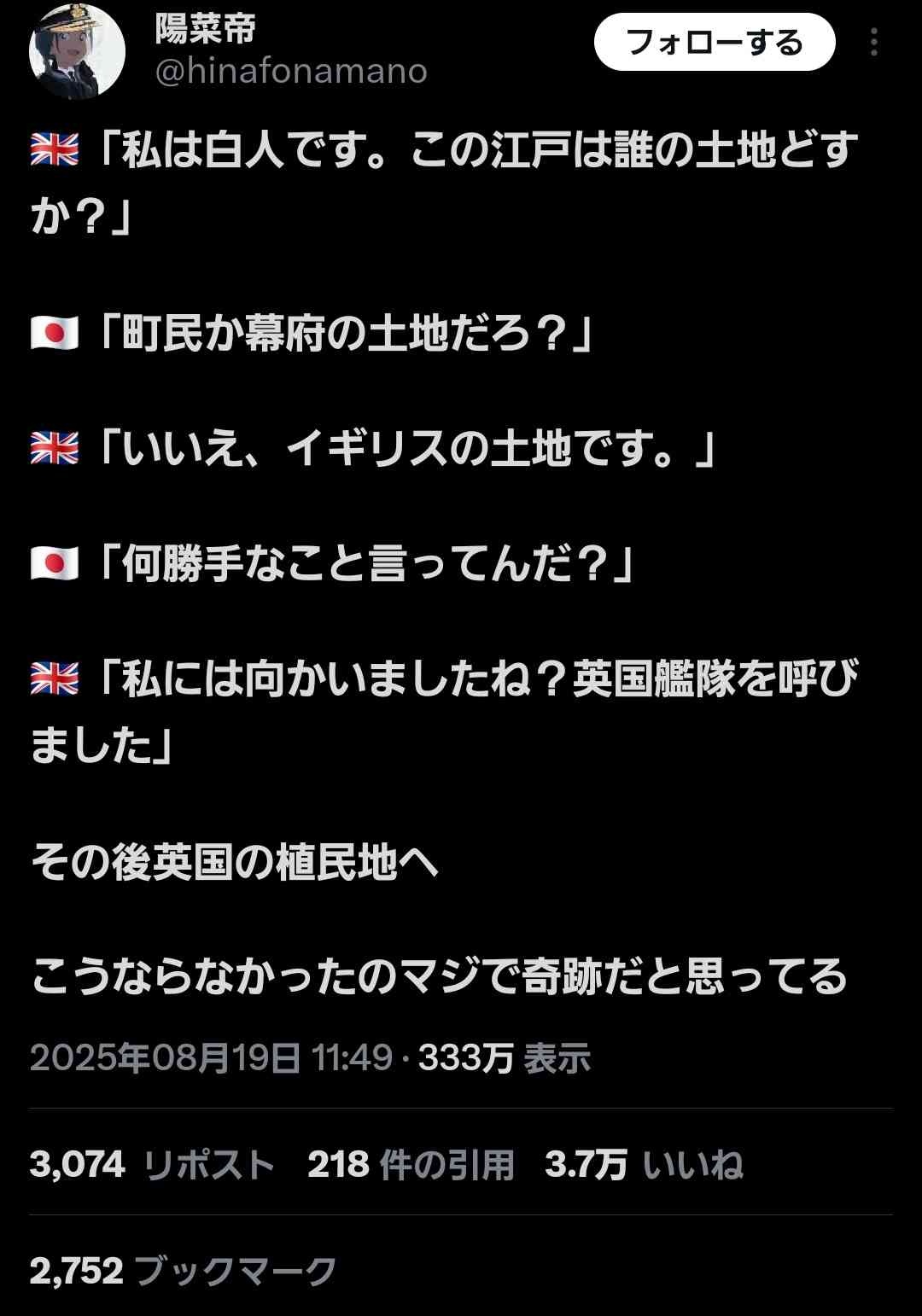 日本さん、イギリスの植民地にならなかったことがマジで奇跡だと再評価され話題に…3.7万いいね👍