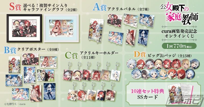 >>1KADOKAWAが運営するオンラインくじサービス「くじ引き堂」に、ファンタジア文庫『公女殿下の家庭教師』のオリジナルグッズが手に入る「『公女殿下の家庭教師』cura画集発売記念オンラインくじ」が登場! 2025年8月26日(火)12時より販売開始です。