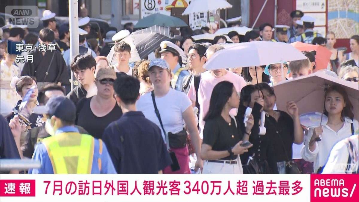 2025年8月20日 16:38先月1カ月間の訪日外国人の数は340万人を超え、7月としての過去最多を更新しました。
