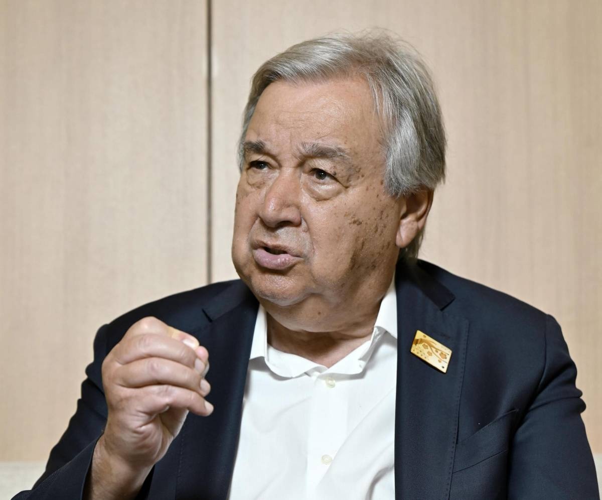 来日中のグテレス国連事務総長が22日、大阪市で共同通信の単独インタビューに応じ、検討している国連機能の一部移転について