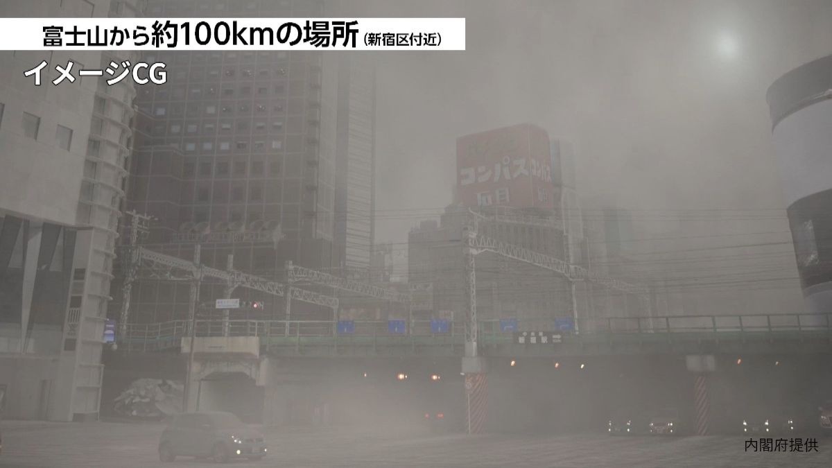 “富士山噴火”から2日後に東京・新宿も火山灰5cm以上…被害想定CG映像を初公開 内閣府「普段から食料品など備蓄を」