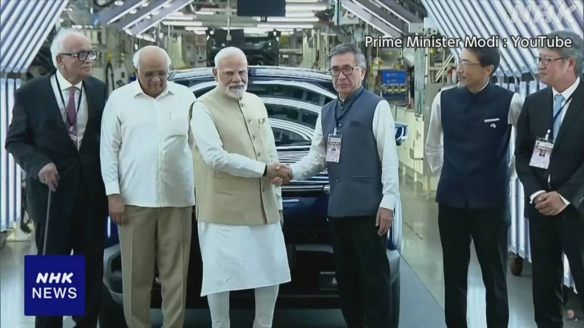 まもなく来日する予定のモディ首相は、出荷を記念する式典に駆けつけ、日本との経済的なつながりを強くアピールしました。インドを最大の市場とするスズキは、2025年からインドでのEVの生産に乗り出していて、26日、西部グジャラート州の工場で、SUV=多目的スポーツ車のEVの出荷を始めました。