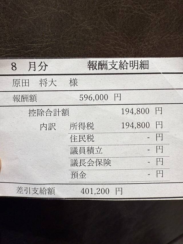 7月20日投開票の奈良市議選で当選したへずま氏は「8月分報酬支給明細 報酬額596000円 控除合計額194800円(内訳 所得税194800円 差引支給額40万1200円」との明細を画像で添付。「地方議員でもこんなにあるんですね。感謝の気持ちと緊張感が高まりました。何としてでも結果を残します」と誓った。