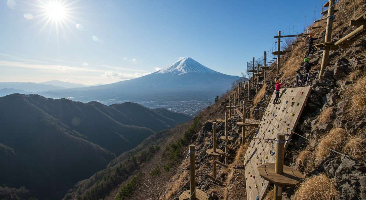 富士山が見える絶景の断崖絶壁をスリリングに移動します。気分はまるでSASUKE!