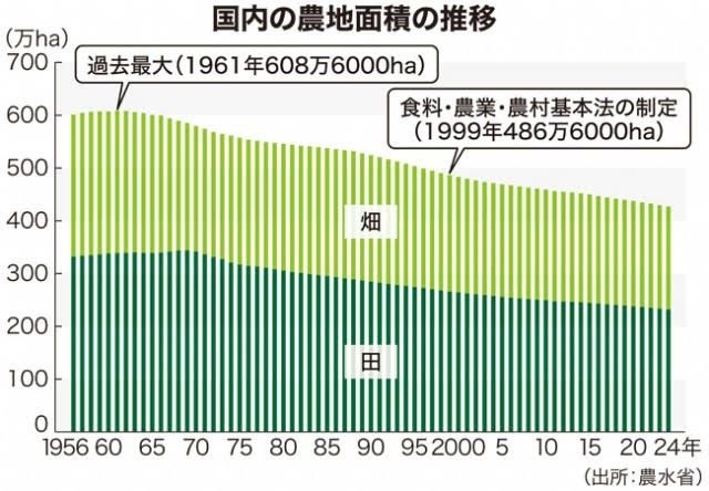 耕作放棄地の割合も増えてるので、かなり厳しい状況になっている