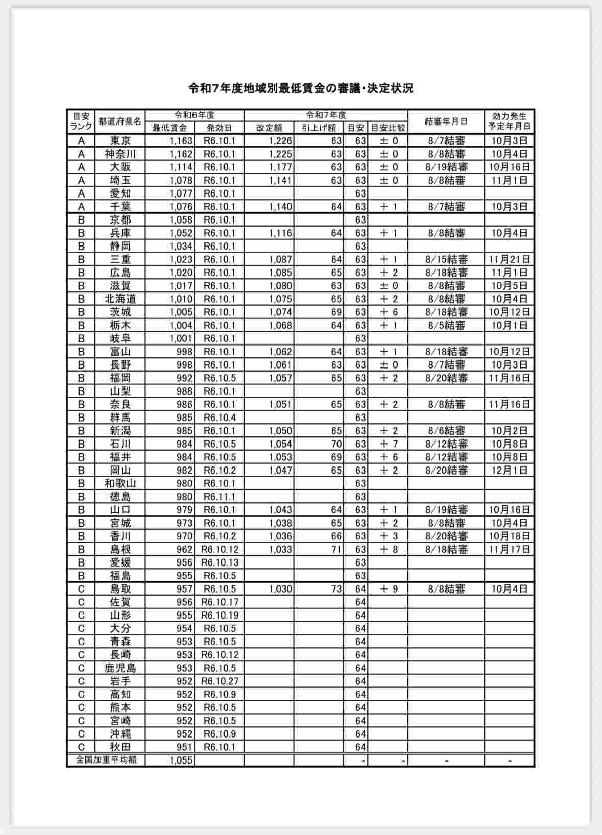 全国一律で10月なんて半端な時期じゃなく年度変わりか年変わりのタイミングで改定でいいんじゃねとは思う