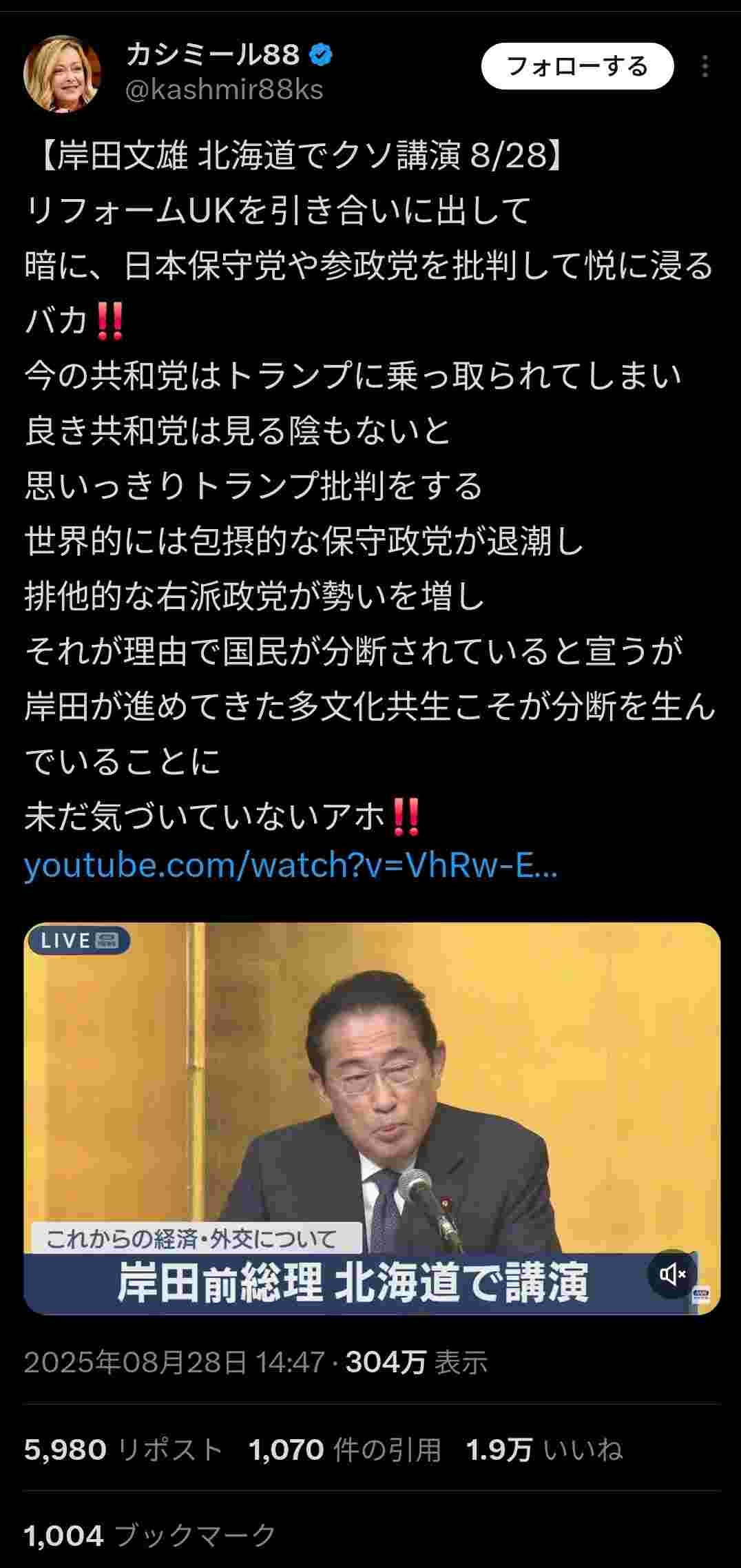 岸田がこんなこと言っるようだと、日本のことに置き換えて見ると、高市支持なんて絶対にありえないことがわかるな