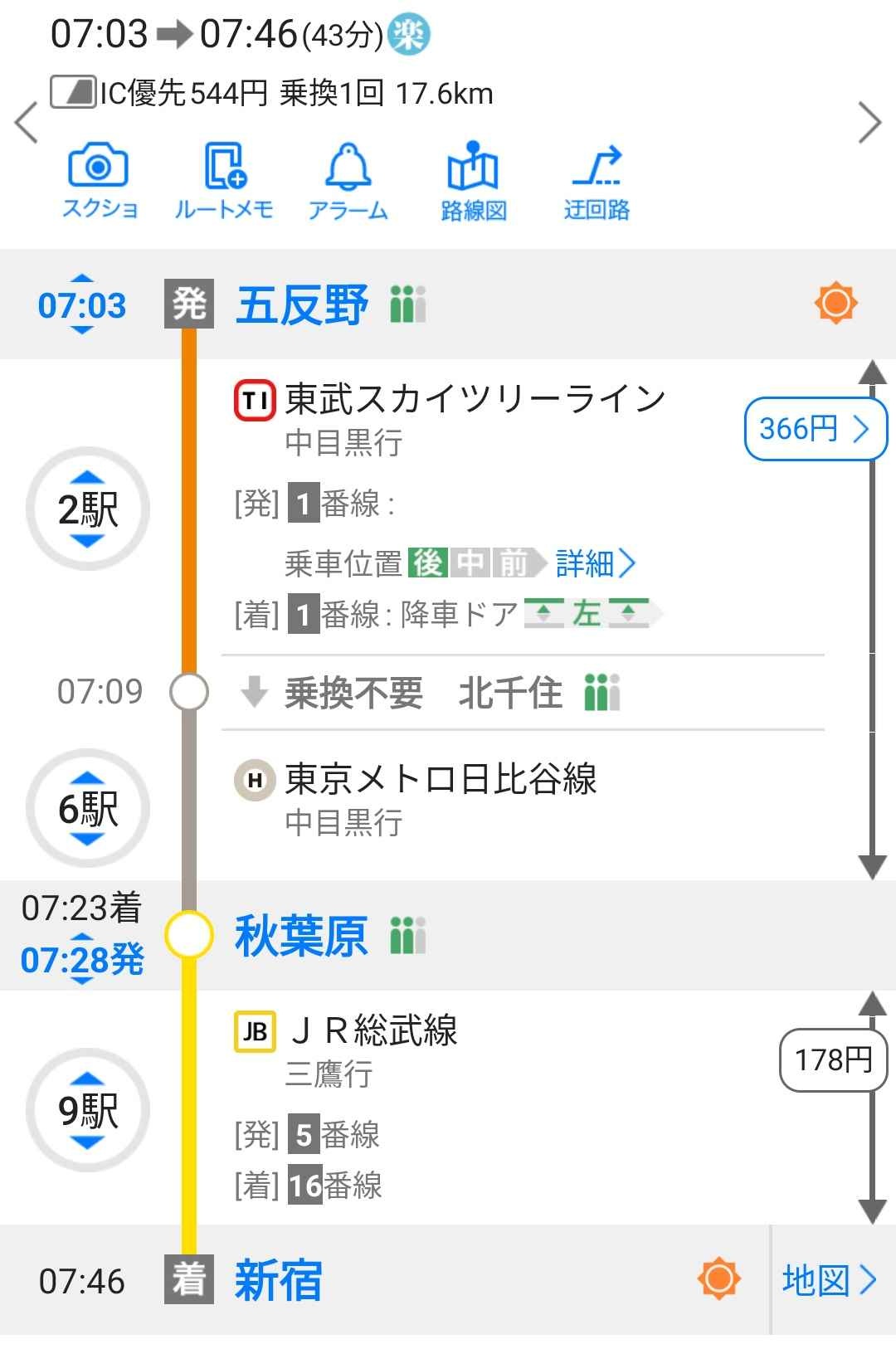 秋葉原は綾瀬から20分だけど渋谷も東京も30分かかるな